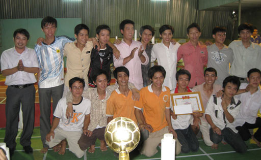 Thầy TS. Trần Hành - Hiệu Trưởng nhà trường trao bằng khen và cúp cho đội vô địch
