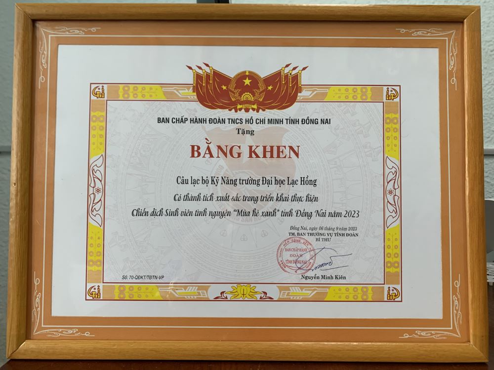 Tại buổi lễ Đoàn trường, Hội Sinh viên trường Đại học Lạc Hồng vinh dự nhận Bằng khen của Tỉnh đoàn, Hội Sinh viên tỉnh đạt thành tích xuất sắc trong triển khai thực hiện Chiến dịch Thanh niên tình nguyện hè năm 2023 với các cá nhân và tập thể điền hình như sau: