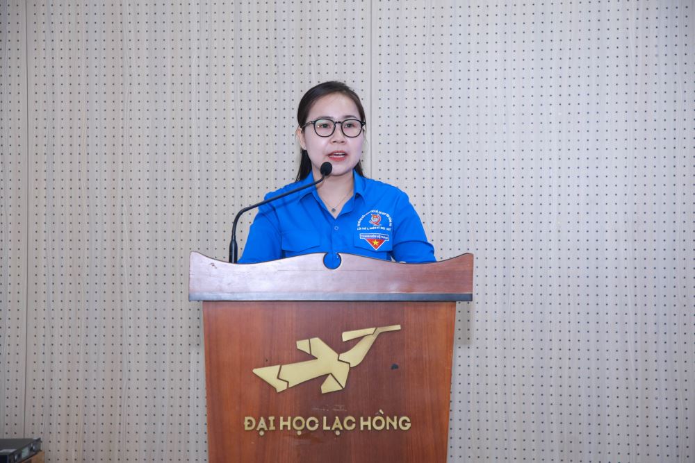 Đồng chí Trương Lê Bảo Trinh – Bí thư Đoàn trường ghi nhận, biểu dương những kết quả đạt được của công tác Đoàn, Hội và phong trào thanh niên, sinh viên; nêu ra những hạn chế trong công tác Đoàn - Hội năm học 2023 – 2024; triển khai phương hướng, nhiệm vụ trọng tâm trong năm học mới 2024 - 2025.