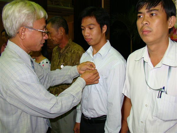 Thầy Châu Quang Trạng nhận huy hiệu trong công tác vận động hiến máu năm 2009