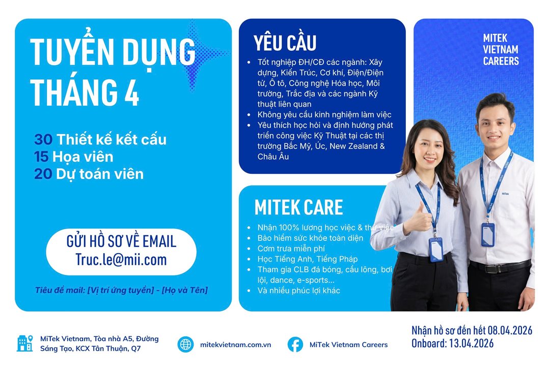 Thông báo tuyển dụng, việc làm toàn thời gian lần 81, năm học 2025-2026 (Công ty Mitek Việt Nam).