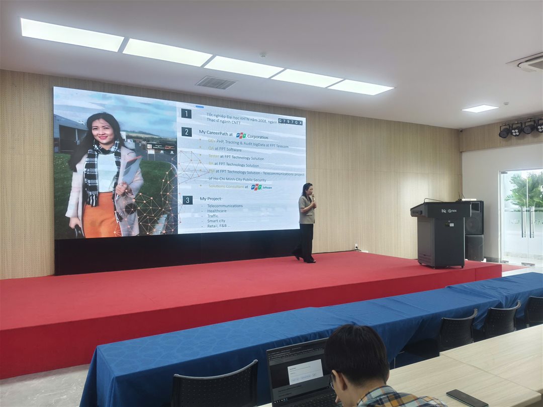 Bên cạnh đó, cô còn giới thiệu các xu hướng ứng dụng Trí tuệ nhân tạo (AI) trong kiểm thử, tự động hóa quy trình, và tối ưu hóa trải nghiệm người dùng – những kỹ năng đang được các doanh nghiệp công nghệ hàng đầu quan tâm.
