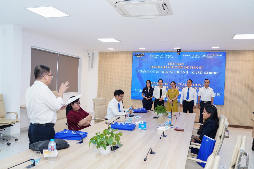 Ngày 22 tháng 12 năm 2025, tại phòng họp cơ sở 1 của Trường Đại học Lạc Hồng (LHU), 6 nghiên cứu sinh Huỳnh Thúc Hiếu, Phan Thị Hời, Nguyễn Minh Hưng, Nguyễn Huy, Đinh Thị Mừng và Nguyễn Thị Thảo ngành Quản trị kinh doanh đã hoàn thành buổi đánh giá chuyên đề Luận án tiến sĩ của mình.