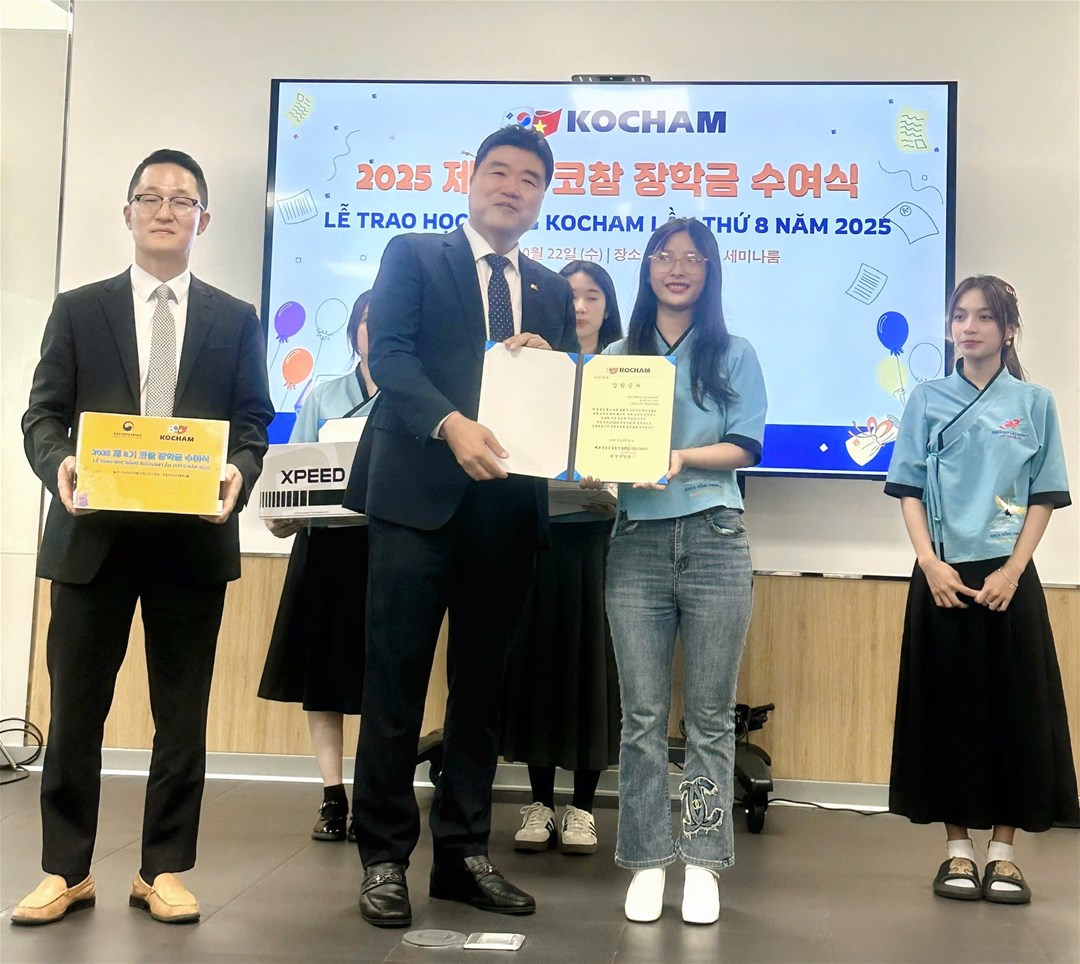 Học bổng KOCHAM được trao cho sinh viên năm 3 và năm 4 có thành tích học tập tốt, tinh thần cầu tiến và nghị lực vượt khó. Đây là một trong những hoạt động thường niên mang ý nghĩa lớn lao, nhằm khích lệ tinh thần học tập và hỗ trợ sinh viên Việt Nam đang theo đuổi ngành Hàn Quốc học.Đa
