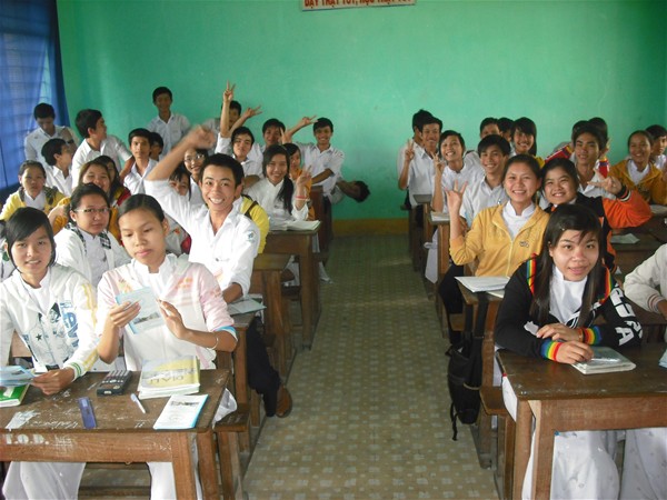 Chụp hình lưu niệm tại trường THPT Đức Phổ 1