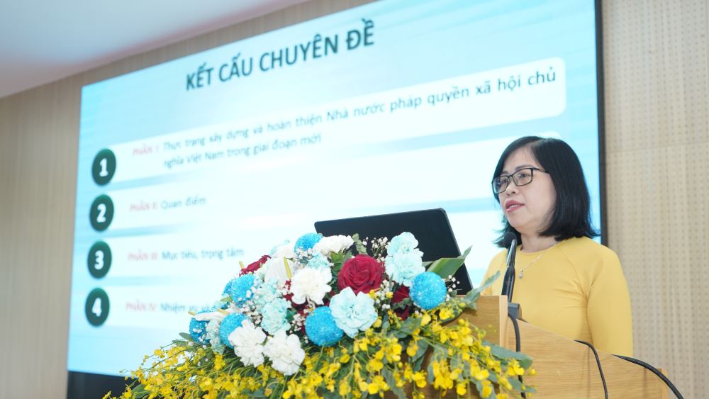 Tại hội nghị, các đại biểu đã được Đồng chí Trần Văn Giới - UVTV, Trưởng Ban Tuyên giáo Đảng ủy khối, Chủ tịch Hội CCB khối và Đồng chí Trương Thị Ngọc Hiền - UĐV, Phó Trưởng Ban Tuyên giáo Đảng ủy khối giới thiệu khái quát nội dung 4 chuyên đề: “Tiếp tục xây dựng và hoàn thiện Nhà nước pháp quyền XHCN Việt Nam trong giai đoạn mới”; “Tiếp tục đổi mới phương thức lãnh đạo cầm quyền của Đảng đối với hệ thống chính trị trong giai đoạn mới”; “Tiếp tục đẩy mạnh công nghiệp hóa, hiện đại hóa đất nước đến năm 2030, tầm nhìn đến năm 2045”; “Định hướng Quy hoạch tổng thể quốc gia thời kỳ 2021 - 2030, tầm nhìn đến năm 2050”.