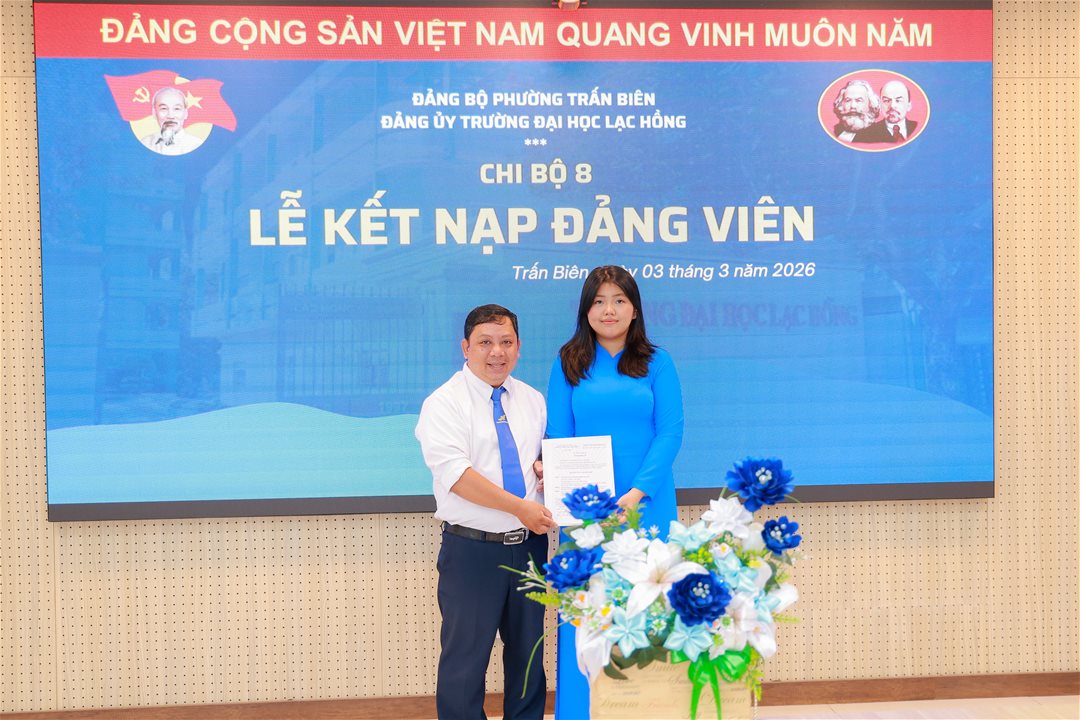 Sáng ngày 3/3/2026 tại phòng họp, Trường Đại học Lạc Hồng, Chi bộ 8 đã long trọng tổ chức Lễ kết nạp đoàn viên, sinh viên ưu tú Nghê Minh Gia Hân vào Đảng Cộng sản Việt Nam.