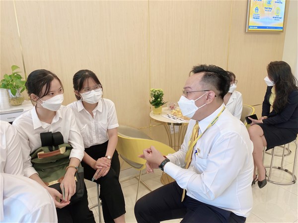 In this activity, students learned about the One bank digital banking system at Nam A Bank. In addition, they also have the opportunity to experience the role of support staff and customers.
