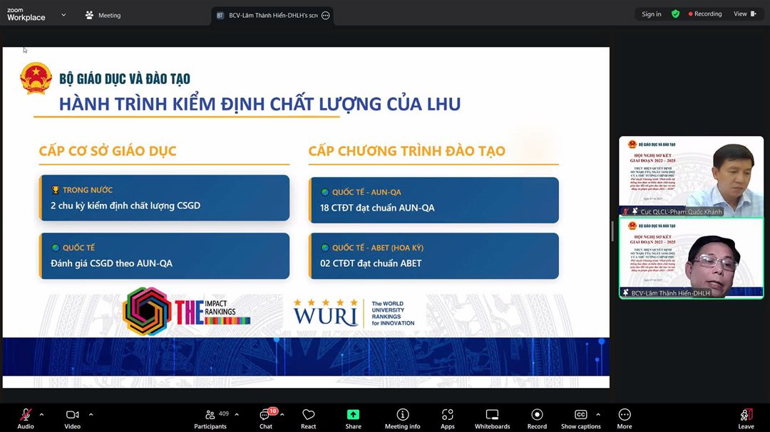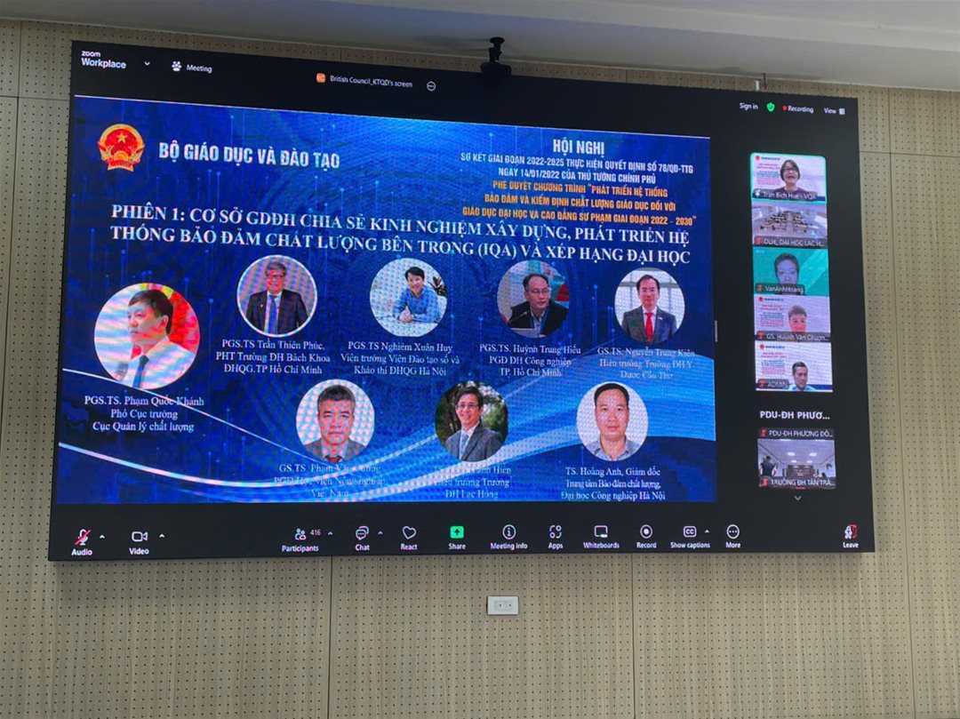 Hội nghị sơ kết việc thực hiện Quyết định số 78/QD-TTg của Thủ tướng Chính phủ. Phê duyệt Chương trình "Phát triển hệ thống bảo đảm và kiểm định chất lượng giáo dục đối với giáo dục đại học và cao đẳng sư phạm giai đoạn 2022 - 2030" diễn ra theo hình thức trực tuyến, do Cục Quản lý Chất lượng tổ chức, với sự tham dự của 7 cơ sở giáo dục đại học trên cả nước.