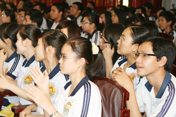 In this enrollment consultancy program, Dr. Tran Hanh also awarded the scholarship worth VND 10 million to students of Ngo Quyen high school.