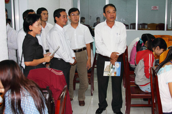 On behalf of Lac Hong University, Mr. Tran Minh Man – Head of Department of Administrative Affairs acknowledged the delegation for their visit to the university. He added that presently the university is training more than 100 Laos and Cambodian students sponsored by Tin Nghia Company. Five new students would be accommodated at the university’s dormitory. The university has granted 5 scholarships including the whole school fee and accommodation expenses to these students. After receiving, Mr. Man leaded the delegation to visit some units of the university such as Information and Resources Center, dormitory …