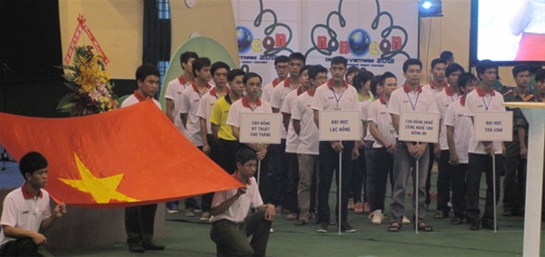 The regional qualifying round of Robocon Vietnam 2013 was kicked off at Rach Mieu Sports House, Hoa Phuong street, Phu Nhuan district, HCM City on April 5. Attending the opening ceremony was leaders of Vietnam Television, of the Ministry of Education and Training, of Toyota Vietnam Co., of universities and colleges in the South, robocon teams and a large number of supporters.  The opening ceremony and competitions will be broadcast live on VTV 9.