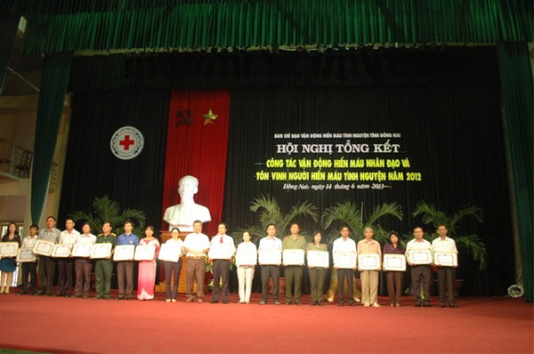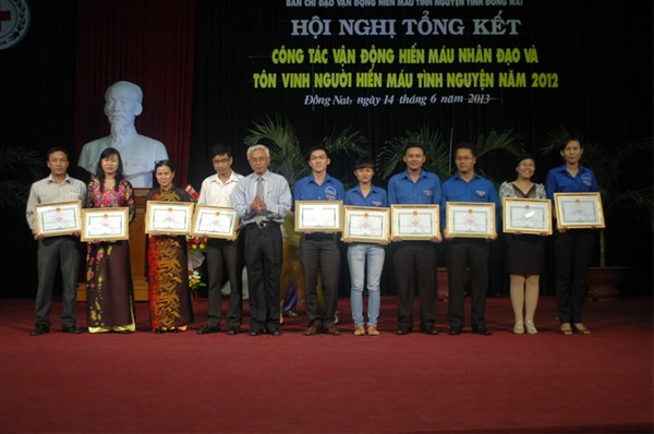 In the morning of June 14, Dong Nai province’s Steering Committee of Voluntary Blood Donation solemnly held a ceremony to honor individuals and collectives for their blood donation efforts 2012. Rector of the University Dr. Diep Cam Thu attended the ceremony together with individuals and collectives who actively participated in humanitarian blood donation programs 2012.