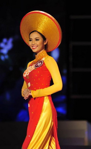 Candidate Doan Kim Phung in traditional costume part at the finale.