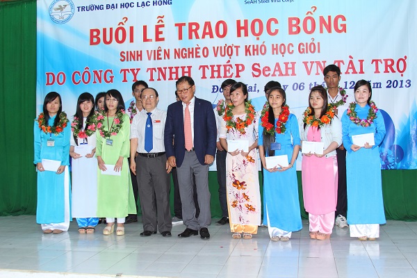 At the scholarship awarding ceremony, representatives of LHU Dr. Nguyen Van Nam and SeAH Steel Corp. Mr. Nam Hyung Kun have delivered speeches on bilateral cooperation between the two sides. Earlier on January 8, 2013 SeAH Steel Vina Corp. awarded scholarships worth $ 5 500 USD (VND 10 500 000 each) to 11 studious poor students. In addition, Mr Nam Hyung Kun expressed his wish to welcome student generations to cooperate and work for the company. The ceremony was also a good occasion for LHU to introduce its construction, development and training activities. It helped students learn more about policies, human resources developing strategies and annual scholarship programs of SeAH Steel Vina Corp.