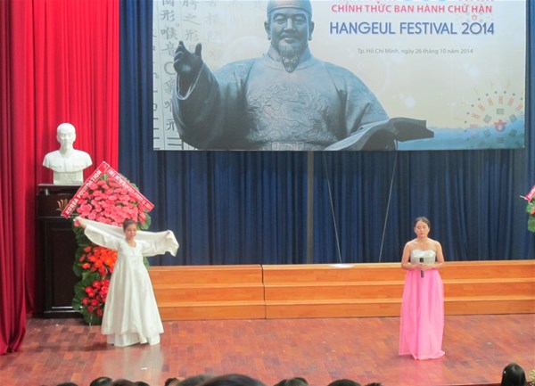 As usual, the Korean Foundation, Korean Cultural Institute, KOICA (Korea International Cooperation Agency), Korean Consulate in Ho Chi Minh city in association with HCM University of Social Sciences and Humanities held Hangeul Festival 2014 on October 26 with the aim of creating a playground for all Korean language learners; linking Korean language training universities and centers in Southern region; populating Korean culture and strengthen the mutual understanding and cooperation relation between Vietnam - Korea.