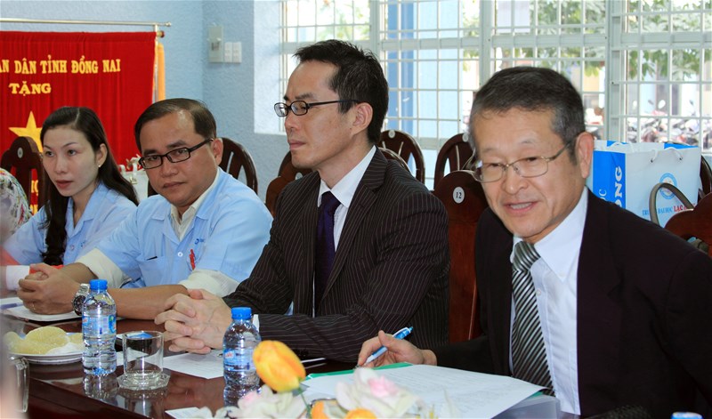 Mr. Shunichiro Onaka (first, right) expressed his wish to cooperate and maintain Mabuchi Motor Scholarship Fund at Lac Hong University.