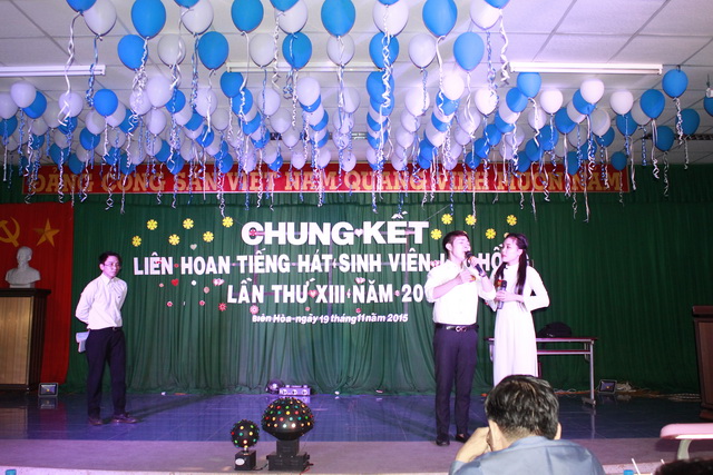Attending the 13th Student's Singing Contest were Secretary of Party Comiitee Nguyen Trung Phuong, Vice Rector - Chairman of Trade Union Diep Cam Thu, Secretary of Youth Union Le Son Quang, Chairman of Student Association Tran Tien, other comrades, officials and more than 400 fans.