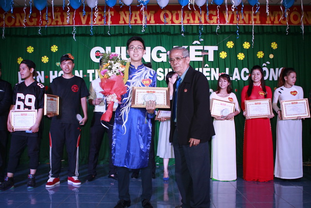 Chairman of Student Association Tran Tien awarded certificates of merit to dancing items.