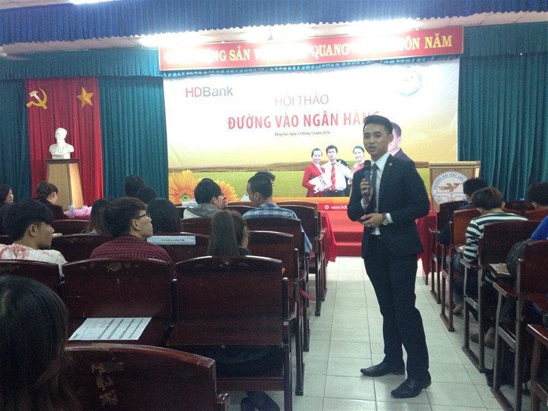 Opening the seminar saw the presence of Dr. Nguyen Van Nam - Vice Rector, Dr. Nguyen Van Tan - Dean of Faculty of International Business Administration, Dr. Nguyen Quoc Huy - Vice Dean of Faculty of Finance and Accounting and Dr. Tran Dung - Director of Enterprise Relation & Student Support Center. HD Bank included Ms. Nguyen Ngoc Phuong Thy - Vice Director of Human Resources - Director of Training Center and Mr. Nguyen Van Hoang - Regional Director - Director of Department of Dong Nai Transaction and colleagues.