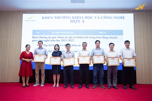 On this occasion, LHU praised and rewarded 75 individuals and 3 collectives including the Faculty of Pharmacy, the Faculty of Mechatronics and Electronics and the Center for Information and Resources for their outstanding achievements in science and technology activities, innovative and creative solutions in the 2021-2022 academic year. The University also launched the 2022-2023 school year's initiative theme. More useful research topics and innovative solutions are expected to be carried out to contribute to improving the quality of teaching and learning next year.