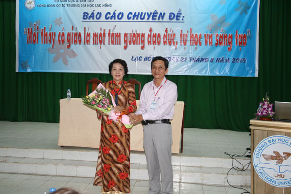 Morning August 21st, 2010 , Commission of Women, Union of Lac Hong University held a seminar entitled "Each teacher is a moral, self-taught and creative example. " reported by Vu Thi Thanh Binh, PhD - Former Vice Chairman of Vietnam Education Union.