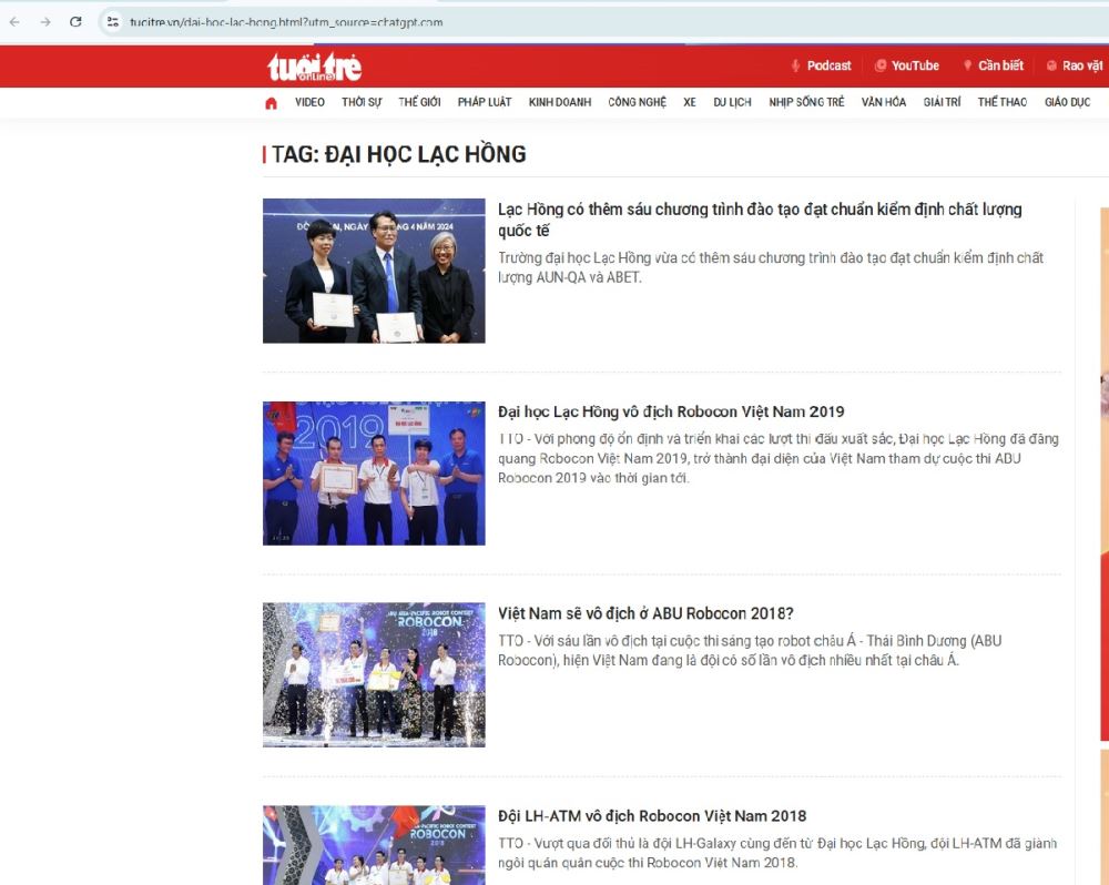 - Lạc Hồng có thêm sáu chương trình đào tạo đạt chuẩn kiểm định chất lượng quốc tế: Trường vừa có thêm sáu chương trình đào tạo đạt chuẩn kiểm định chất lượng AUN-QA và ABET.