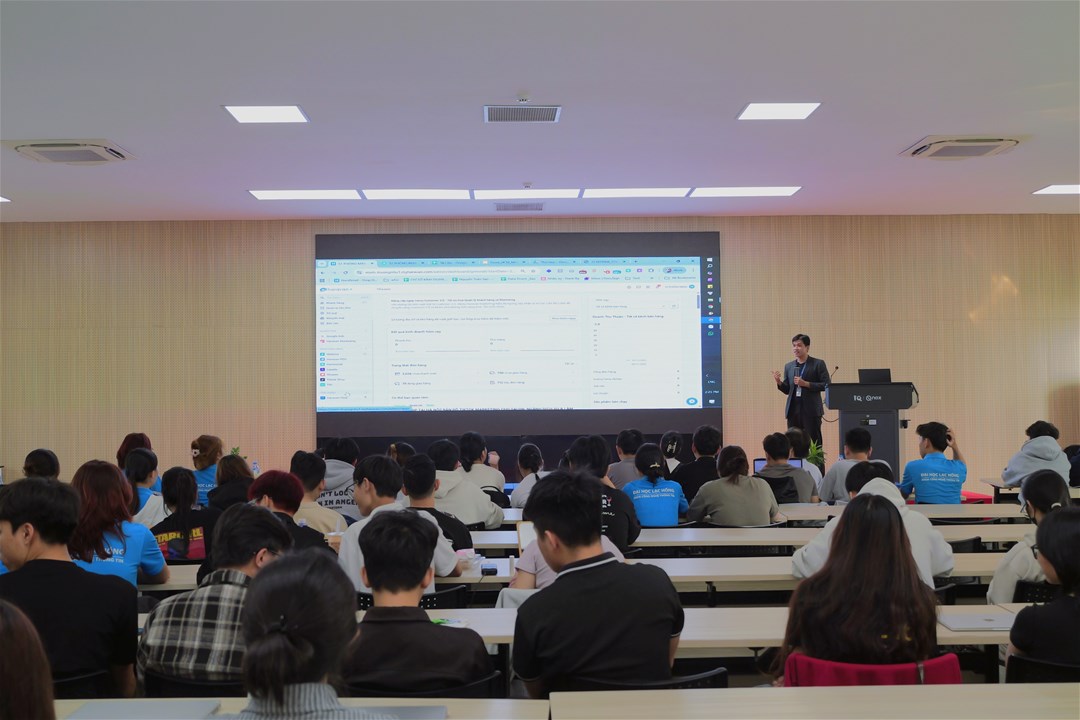 The workshop unfolded in an enthusiastic and lively atmosphere, attracting a large number of students from various faculties and majors within the university. Students proactively asked the speaker many interesting questions, expressing their eagerness to learn, desire for improvement, and deep interest in e-commerce trends. This demonstrated their initiative in exploring and engaging with the practical realities of their future careers.