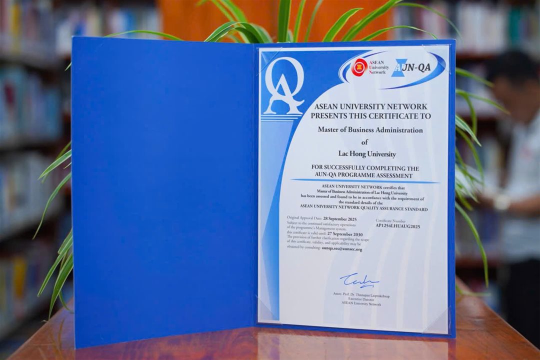 Trường Đại học Lạc Hồng (LHU) vừa chính thức đạt chứng nhận AUN-QA cho bốn chương trình thạc sĩ đầu tiên, khẳng định cam kết mạnh mẽ với giáo dục chất lượng và phát triển bền vững trong khu vực Đông Nam Á.